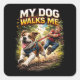 A hilarious, high-energy scene of a joyful dog dragging its human down a forest path, perfectly capturing the chaos and love of dog ownership.