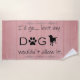 The My Dog Wouldn't Allow It Beach Towel features text that says "I'd go...but my dog wouldn't allow it." with a paw print and dog silhouette embellishment against a pink wooden background. Additional gift items available with this design as well.