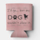 Keep your can beverages cool with a My Dog Wouldn't Allow It Cooler. Cooler design features text that says "I'd go...but my dog wouldn't allow it." with a paw print and dog silhouette embellishment against a pink wooden background. Additional gift items available with this design as well.