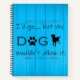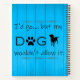 A perfect notebook for those who prefer the company of dog and the comforts of home! This notebook design features text that says "I'd go...but my dog wouldn't allow it." with a paw print and dog silhouette embellishment against a blue wooden background. Additional gift items available with this design as well.