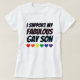 I Support My Fabulous Gay Son in back coloured text, with a row of hearts in rainbow colours. LGBT Support, rainbow pride, family support for gender equality and gender acceptance. Lifestyle pro Gay swag. My Son is the best! And cute, too! This design also available in a lightened version for darker apparel.