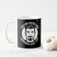 My Face on a custom Mug, 11 oz., 3.2" diameter x 3.8" high, with BLACK background and COLLEGE text font. (A combo mug has black, hunter green, maroon, navy blue or yellow handle + inside). Custom photo and personalized text template with two individually customized design areas (see store for more background colors, font styles, and alternative template options).