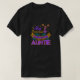 I give wanted to give this a 4 instead of a 5 because these Basic DARK T0shirts run unexpectedly SLIM or Narrow. Which is great if you do not have a potbelly, but I have a paunch. It isn't the shirt's fault that I've got a beer belly. The design and shirt itself is a quality cotton shirt. The color is more of a deep purple, but still a very pretty color. The Basic DARK T-shirts run a bit SLIMMER than the Basic Ts. The neck is a fraction narrower (or seems to be narrower) also. I'm a paunchy middle-aged woman and my neck is 12 inches (31cm) thick and the neckline fell about the same as in the photo of the man, and I had the desire to tug it a bit. So if you're a thick necked man or like loose shirts, be aware these are slimmer shirts. Once I get rid of my lockdown paunch it'll look great. The shirt washed well in cold water with no apparent bleeding. We don't have a dryer, so it hung dry. Did not shrink. Love the colors and the design. The design looks smaller on my shirt than it does on the model on-line. But still, it looks good on the shirt. The printing looks as it does on the model, just the size seems fractionally smaller. Washed garment in cold water, hung dry and design appeared unaffected.