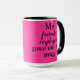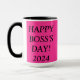 "My favourite employee gave me this mug" Boss's Day Coffee/Tea Mug. Celebrate Boss's Day with a thoughtful gift that’s sure to bring a smile every time they use it! This charming mug features the cheerful message, "Happy Boss's Day 2024" on one side and the humourous message, "My favourite employee gave me this mug". While the hot pink background might be better suited for a female boss, this mug can be customised, by changing the background colour to better suit a more masculine boss. Show your appreciation and brighten their day with this unique and personal touch!