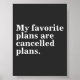 My favourite plans are cancelled plans funny sayin poster