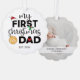 Show your happiness for your first Christmas as a dad with this lovely first Christmas ornament decorated with a red Santa hat, holly leaves, and colourful Christmas lights. Easily customisable with your baby's name and date of birth and one of your favourite pictures on the reverse.