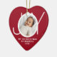 This stylish heart-shaped My First Christmas as Grandpa Photo Ornament features the word "JOY" on a red background.