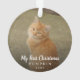 Did you get a new kitten this year? Add a memory to your tree with this modern keepsake ornament featuring a simple yet elegant design with the message "My First Christmas" in white chalk script along with your cat's name and the year, over your favourite photo. Add the same photo to both sides or a different one on each side. This ornament is a great way to commemorate your new pet.