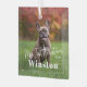 My First Christmas Custom Name Photo Holiday glass ornament with your pet’s name in a bold white serif font, the words "My First Christmas" and custom year below in a classic serif font.