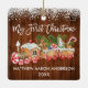 Modern Brush Script My First Christmas Baby Ornament includes Watercolor Gingerbread Train with candy, cookies and pines. Rustic Country Wood Print with Snow.