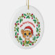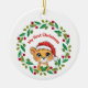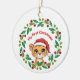 This adorable ornament features a cute cheetah encircled by a festive Christmas wreath adorned with holy berries. Perfect for a baby’s first Christmas decoration, while the cute design brings a joyful holiday spirit to the little one's celebration.