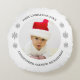 Personalise this modern and elegant 'My First Christmas' pillow with your baby's photo, name, and the year of birth. Snowflakes accent your baby's photo. Photo template via Pixabay licensed under CC0 and must be replaced with your own photo
