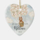 Featuring a cute teddy bear in a gold hot air balloon with snowflakes. Personalise with your favourite baby photo, name and date to create a unique memory and gift for a first Christmas. A lovely keepsake to celebrate your new arrival! Designed by Thisisnotme©