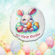 Cute little easter bunny with colorful easter eggs, monogrammed for you to insert your own text, My First Easter, for girls.