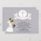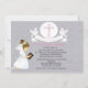 Celebrate her First Holy Communion with this invitation inviting your guests to share this special day with you. The background has a light grey textured background . On the top in the centre there is "My First Communion" it is a banner held by doves on each side. In the centre is a white circle with alight pink cross. There's a brown haired girl wearing a beautiful white dress kneeling holding a bible. Add your party information in the centre of this invite. This invitation is completely customisable choosing your font colour, style, and size.