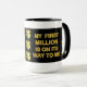 Mug with a Positive Affirmation : "MILLION DOLLAR MUG - MY FIRST MILLION IS ON ITS WAY TO ME" in gold writing with golden dollar signs on a black background. Use this mug every day to reprogram your subconscious mind with an attitude of expectancy in order to manifest ultimate success and wealth. Its also the perfect gift for friends, family or co-workers as they embark on a special project with the aim of becoming financially successful.