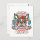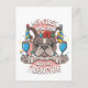 This is a cartoonish image of a French Bulldog in a celebration mood. it's seems to be celebrating it's first new year with the owner..
