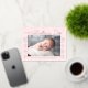Modern Valentine's day postcard featuring "My First Valentine's Day" in a trendy rose gold foil script with hand-drawn hearts along the sides of the card on a blush pink background. Your horizontal photo is displayed near the middle of the design. Personalise the Valentine's Day photo postcard by adding your name and the year in gold foil lettering. The foil postcard reverses to display your return address and personal message.