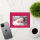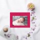 Modern Valentine's day postcard featuring "My First Valentine's Day" in a trendy gold foil script with hand-drawn hearts along the sides of the card on a magenta background. Your horizontal photo is displayed near the middle of the design. Personalise the Valentine's Day photo postcard by adding your name and the year in gold foil lettering. The foil postcard reverses to display your return address and personal message.