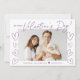Celebrate your baby's 1st Valentine's day with this cute Valentine's day photo card! The card features "My First Valentine's Day" in a trendy purple script with hand-drawn hearts along the sides of the card. Your horizontal photo is displayed near the middle of the design. Personalise the Valentine's day photo card by adding your name and the year in fuchsia lettering. The card reverses to display a purple and white heart pattern.