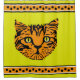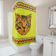 Your kids are going to love taking a bath now w/ this adorable shower curtain featuring gigantic cartoon-style orange & black tiger baby face set against a yellow-green (puce? chartreuse?) background w/ top & bottom borders of large black polka-dots over orange.