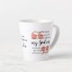 This is a stylish, customisable Christian affirmation latte mug, where I have combined popular verses of Scripture to make a positive declaration on life. The two Bible verses are based on Matthew 6:25-32 and Philippians 4:19, which are the passages about worrying and God's abundant supplying. The design shows black script typography with coral curly speech marks against a white background. In the middle, the text reads POSITIVE AFFIRMATIONS BY plus placeholder name. This middle text is also CUSTOMIZABLE, so you can create your own by adding a personal message and name. This would be a great way to remember to declare positive affirmations throughout the day, while drinking your coffee. An ideal gift for birthdays, Christmas, or to encourage someone believing God for their answer to prayer. Choose from a wide selection of positive Christian affirmation gifts, designed by Berean Designs. Matching gifts available.