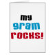 My Gram Rocks T-shirts, cards, stickers, tote bags, magnets, buttons, and other items with a black, blue, and red text design. These My Gram Rocks items are a great way to show your love for your special gram!