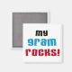 My Gram Rocks T-shirts, cards, stickers, tote bags, magnets, buttons, and other items with a black, blue, and red text design. These My Gram Rocks items are a great way to show your love for your special gram!