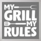 Fun barbeque graphic quote that reads: "My Grill My Rules", featuring a bbq fork and spatula. Click "Personalise" to change image and background colour! | Image by Badea Mihai | Shutterstock. Image ID: 1742273987 | Shutterstock® - All Rights Reserved.