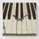 Piano keys with faded music notes on keys and a black clef note on top custom wall clock.