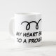 My heart belongs to a programmer Giant Coffee Mug. Big cup for home or office. Cute Birthday gift idea for girlfriend, wife, coworker, colleague, friend, partner etc. Work related gift ideas for Birthday or Valentine's Day. Office humour design with red heart.