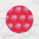 A smiling, contemporary art style emoji as a red heart shaped emoticon face in the bright, colourful Valentine colours of red, pinks, magentas and purples accented with other complementary colours.