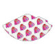 A smiling, contemporary art style emoji as a red heart shaped emoticon face in the bright, colourful Valentine colours of red, pinks, magentas and purples accented with other complementary colours.