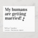 My Humans Are Getting Married! Let your Best Dog announce your wedding with this modern and simple 'My Humans Are Getting Married' pet dog save the date cards / wedding invitations. These QR Code wedding website invitations are perfect when you would like to keep all wedding info on your website, and no worries about lost rsvp’s. These fun pet wedding online wedding invitations are the perfect way to simply your responses to your wedding invitations, make changes to details, dates or the venue its as easy as a few key strokes. This dog wedding save the date announcement will be a hit with your family and friends. COPYRIGHT © 2020 Judy Burrows, Black Dog Art - All Rights Reserved. My Humans Are Getting Married Simple QR Code