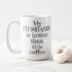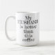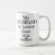 Humorous text "My husband is hotter than this coffee" in bold hand-lettered typography. Great gift for an anniversary, birthday, or Valentine's Day.