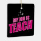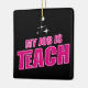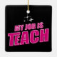 My Job Is Teach, Funny Pink Retro Female Teacher Ceramic Ornament