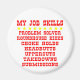 My Job Skills include; Problem Solver, Roundhouse Kicks, Choke Holds, Headbutts, Uppercuts, Takedowns, Submissions