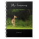 A spiral notebook as a journal with a photo of a deer entering the woods
