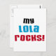 My Lola Rocks T-shirts, cards, stickers, tote bags, magnets, buttons, and other items with a black, blue, and red text design. These My Lola Rocks items are a great way to show your love for your special lola!