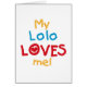 My Lolo Loves Me T-shirts, bodysuits, cards, stickers, mugs, bags, magnets, and more with a colourful blue, red, and yellow text design.