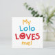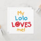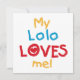 My Lolo Loves Me T-shirts, bodysuits, cards, stickers, mugs, bags, magnets, and more with a colourful blue, red, and yellow text design.