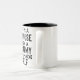 This bold, black and white coffee cup features unique lettering and a fun message.
