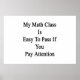My Math Class Is Easy To Pass If You Pay Attenti Poster