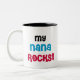 Kids who have the best Nana ever will love this cute black, red, and blue text design with hearts My Nana Rocks on Nana theme T-shirts, mugs, mousepads, magnets, and more.