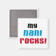 My Nani Rocks T-shirts, cards, stickers, tote bags, magnets, buttons, and other items with a black, blue, and red text design. These My Nani Rocks items are a great way to show your love for your special nani!