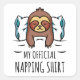 Cute and funny design featuring a sleeping Sloth sleeping and the quote "My official napping shirt". Good for the young and the old.