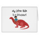 An African American boy gets a ride on a red dinosaur and text reads "My other ride is a dinosaur!" on dinosaur T-shirts, bodysuits, bags, cards, stickers, magnets, keychains, pillows, wall clocks, and more!