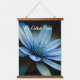 My Outside Oasis", Blue Flower on Black Background Hanging Tapestry