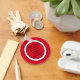 Make sure your pet is taken care of if an emergency happens to you. This keychain tells emergency workers that your pet is alone, and that you have emergency contact information in your wallet. Attention-getting keychain is red and white. Text in black says, "My pet is home alone. See card in wallet for emergency contact information."