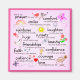 “This is my prayer for you: Comfort on difficult days, smiles when sadness intrudes, rainbows to follow the clouds, laughter to kiss your lips, sunsets to warm your heart, hugs when spirits sag, beauty for your eyes to see, friendships to brighten your being, faith so that you can believe, confidence for when you doubt, courage to know yourself, patience to accept the truth, Love to complete your life.” With a pink background colour that can be customised.